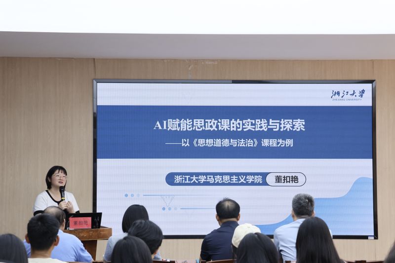 2025年10月17日,我院邀请浙江省“之江青年”社科学者、浙江大学马克思主义副教授、浙江大学思想政治教育研究所副所长董扣艳进行AI智能教学实践的交流与分享。