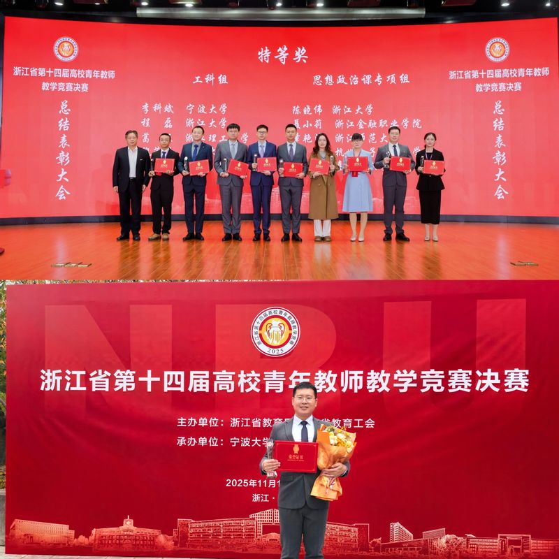 2025年11月14日—17日,由浙江省教育厅、浙江省教育工会主办,宁波大学承办的第十四届浙江省高校青年教师教学竞赛决赛在宁波大学顺利举行。我院蒋正老师凭借参赛课程《毛泽东思想和中国特色社会主义理论体系概论》的精彩呈现,一路过关斩将,最终荣获思政组特等奖,实现了学院在该赛事思政组奖项上的重大突破!