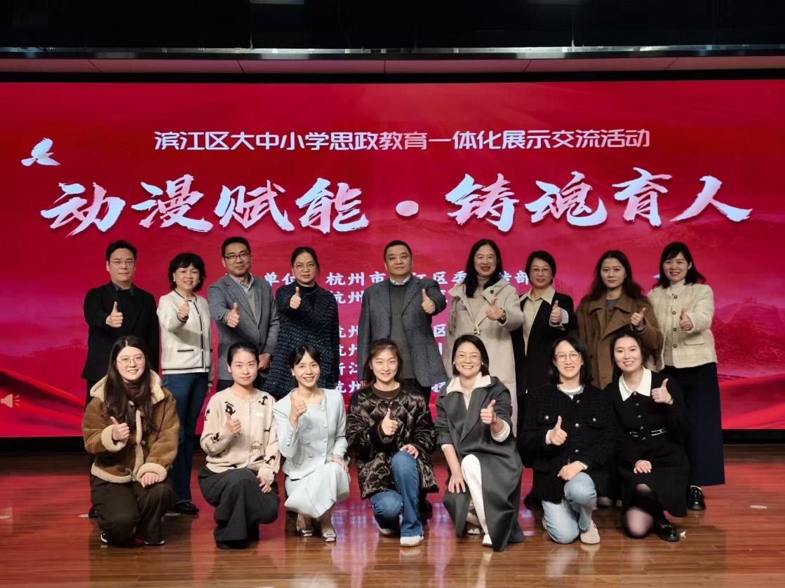 为深入学习贯彻习近平总书记关于学校思政课建设的重要论述和指示精神,推动党的二十届四中全会精神有机融入思政课教学,进一步推进大中小学思政教育一体化建设,提升思政课的时代性、吸引力和实效性,由杭州市滨江区区委宣传部和教育局主办,杭州市滨和中小学、杭州电子科技大学马克思主义学院承办的“动漫赋能•铸魂育人”大中小学思政教育一体化交流活动于11月27日在滨和小学举行。活动主题皆在探索“动漫+思政”融合育人新路径,展示思政教育新形态、新气象。
